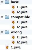 为了演示上面的例子,我给C.java创建了一个测试目录,它下面还有3个子目录,用于存放I1.java和I2.java。测试目录下包含了类C的源码C.java。base目录包含了可以编译和运行的那个版本的接口。I1包含了有default实现的m()方法,I2不包含任何方法。