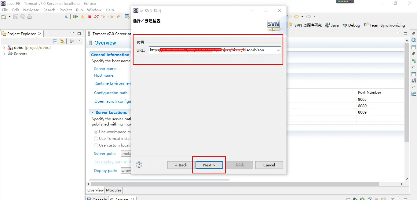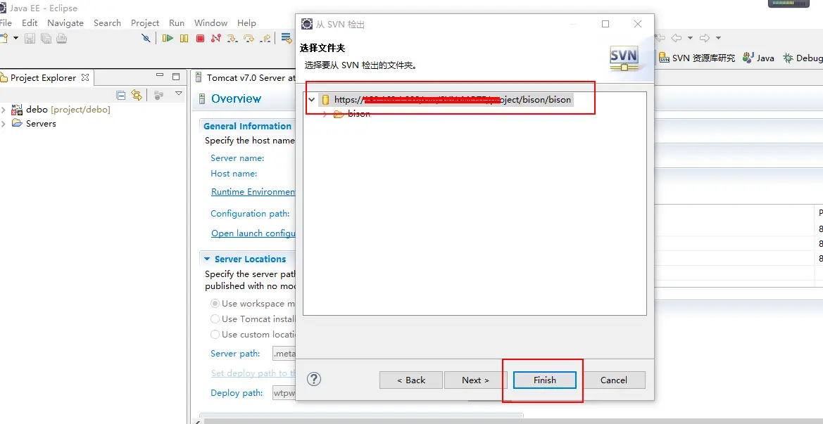 5.选中检索到的远程项目,点击Next,选中时才会出现finish的状态。