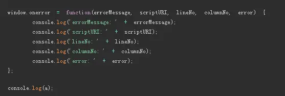 除了try catch还有window.onerror, onerror提供了全局监听异常的功能: