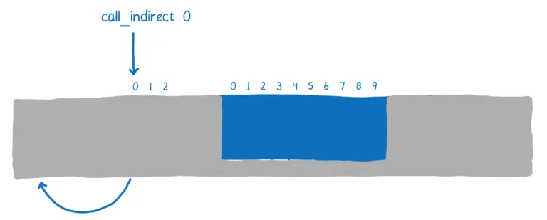 如果WebAssembly模块想要调用其中一个函数,它会将索引传递给名为call_indirect的操作,它会帮忙调用目标函数。
