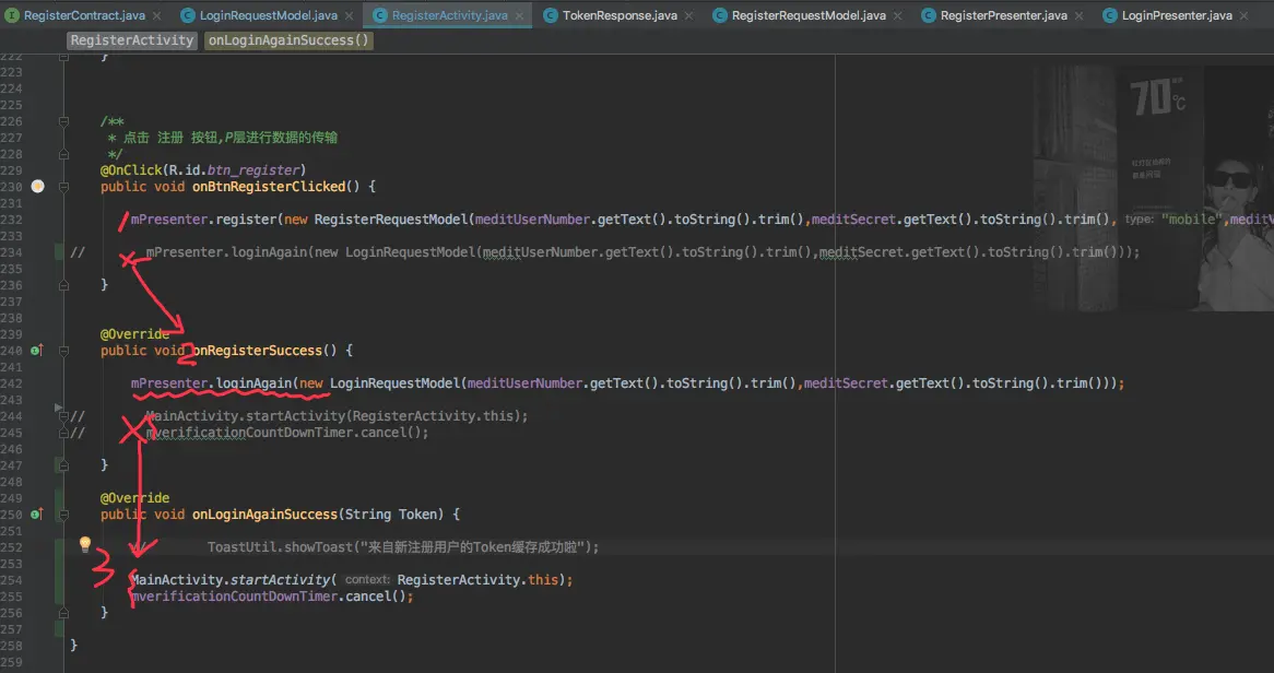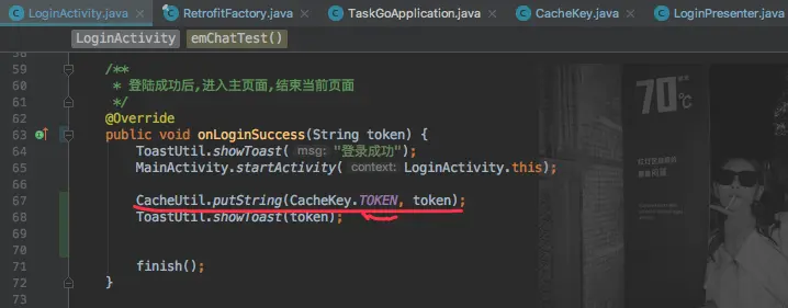 - 由于等用户注册后直接进入主界面,不需要再次进进行登录界面的相关操作,但是Token只能在登录的时候进行本地缓存,所以⚠️⚠️,我们就可以在注册界面 再一次 调用登录的接口
