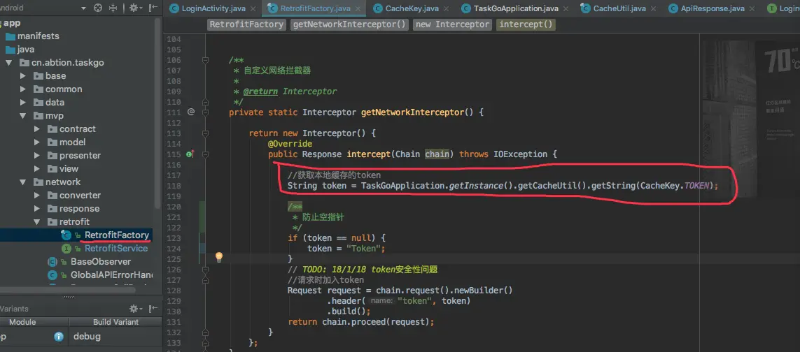 CatheKey.TOKEN -- RetrofitFactory--自定义网络拦截器--获取本地缓存的token
