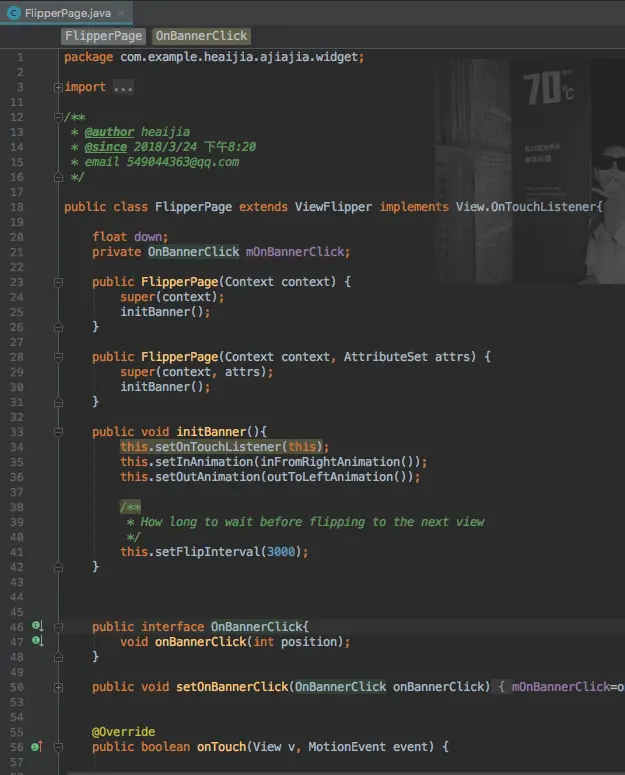 由于我们自己写了自定义的FlipperPage,需要在xml的文件中使用它