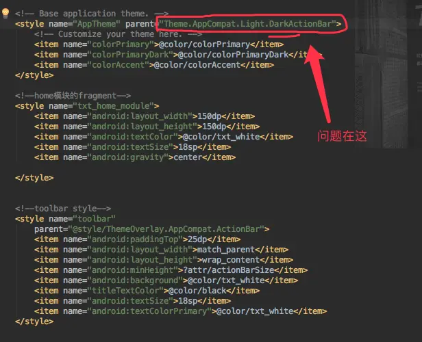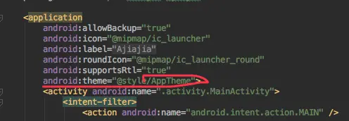 回到AndroidManifest.xml 对应的Activity标签的android:theme中