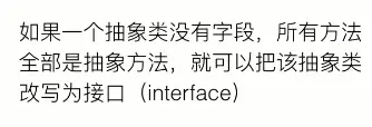 43.如果一个抽象类没有字段,所有方法全部都是抽象方法,就可以把抽象类改写为接口