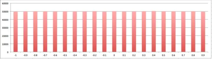 上面代码输出的结果恰恰与我们预期结果相吻合,即:double类型的伪随机数是均匀的分配的,而double类型的高斯伪随机数应该是正态分布的。