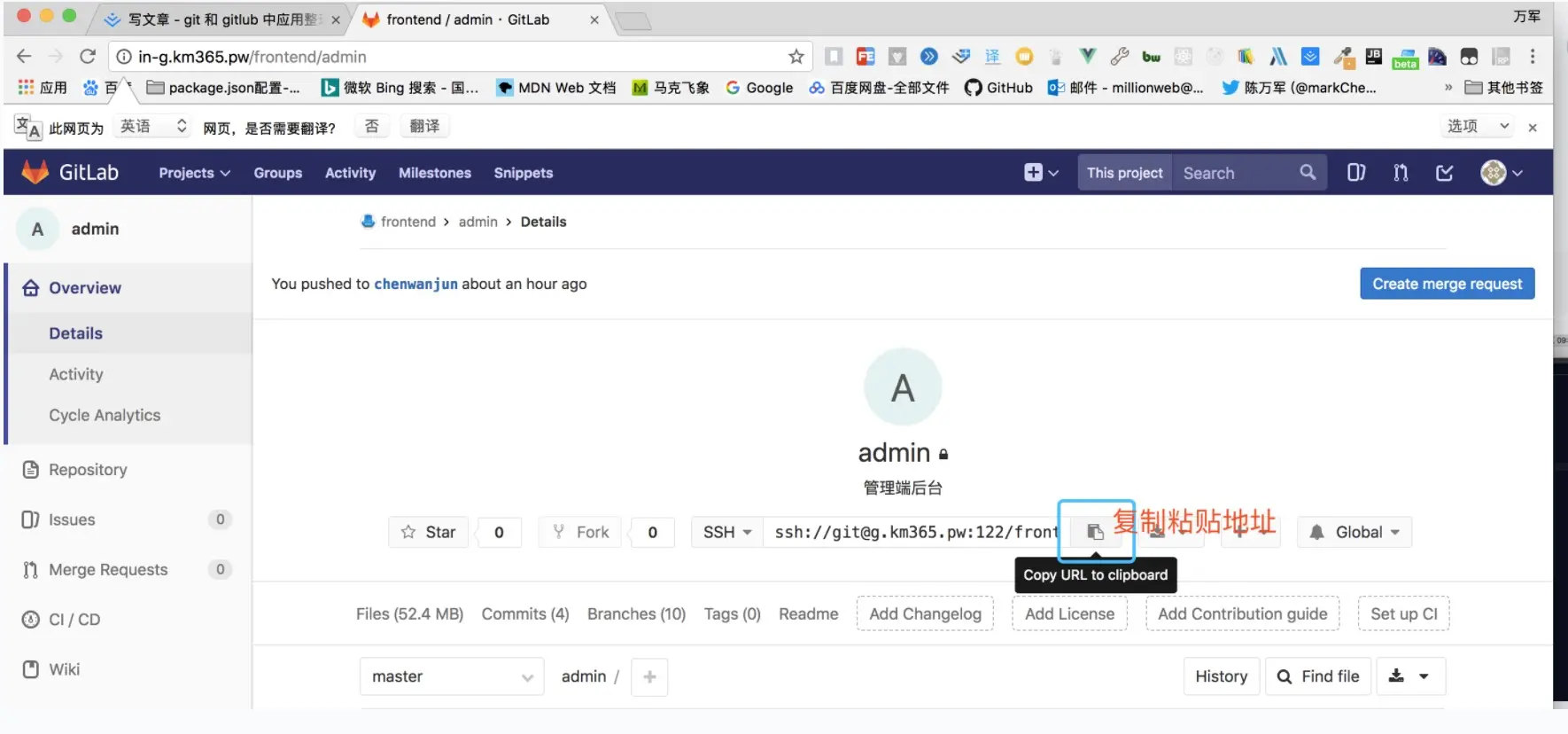 首先先把代码克隆到本地 $ git clone xxx/admin.git