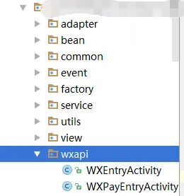 3.包名目录下创建wxapi文件夹,新建WXPayEntryActivity(WXEntryActivity可不创建)。如图: