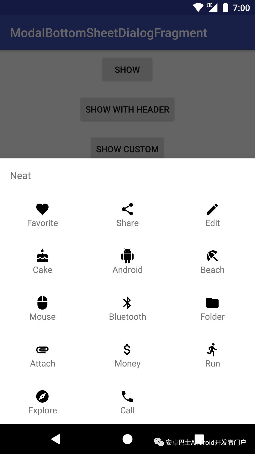 19.ModalBottomSheetDialogFragment基于Material Design 的底部弹出对话框
