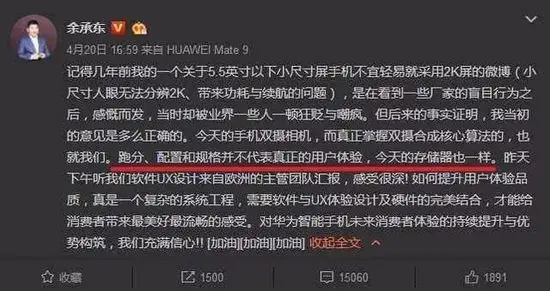 随后,余承东发布了第二篇公关稿,照旧没有正面答复问题,而是表示跑分、配置、规格什么的并不重要,存储问题并不是问题。
