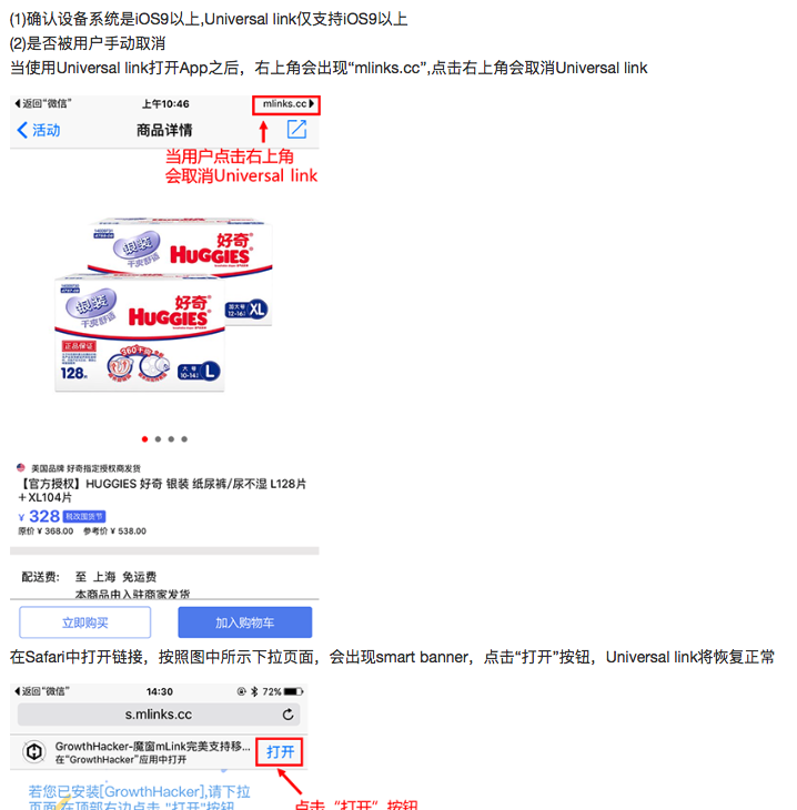 The symptoms are that clicking on a universal link won't open an app that is newly installed on a phone. The universal link takes the user to a web page and is prompted to download the app again.