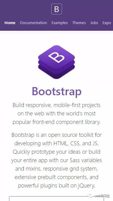 不少Web项目都能在端浏览器和PC端浏览器正常显示,比较简单的做法是利用响应式布局,通过媒体查询等方式来使得代码能够在PC端和移动端自适应显示。比如Bootstrap官网就属于此类。