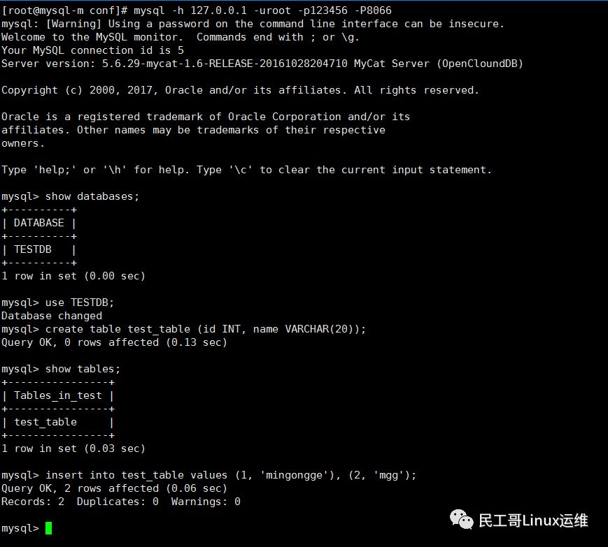 接下来测试通过mycat来进行对主从数据库的读写操作
