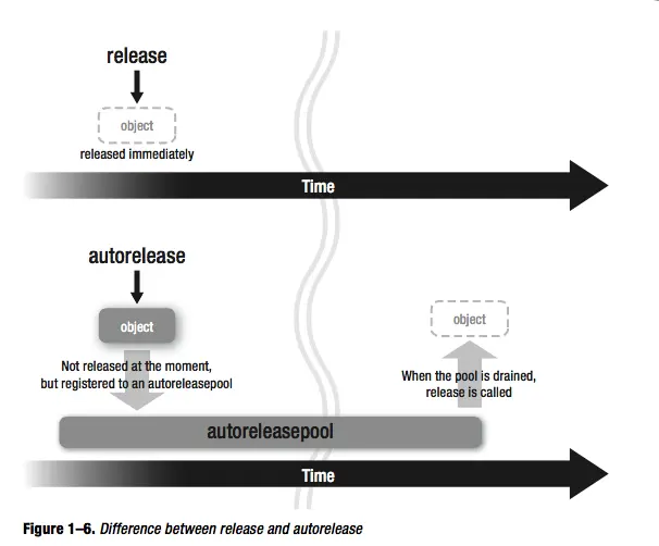 autorelease:不改变该对象的引用计数器的值,只是将对象添加到自动释放池中。 - —