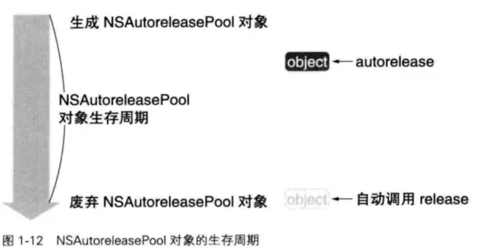 在ARC中,我也可以使用autorelease功能。指定“@autoreleasepool块”来代替“NSAutoreleasePool类对象生成、持有以及废弃这一范围,使用附有__autoreleasing修饰符的变量替代autorelease方法。