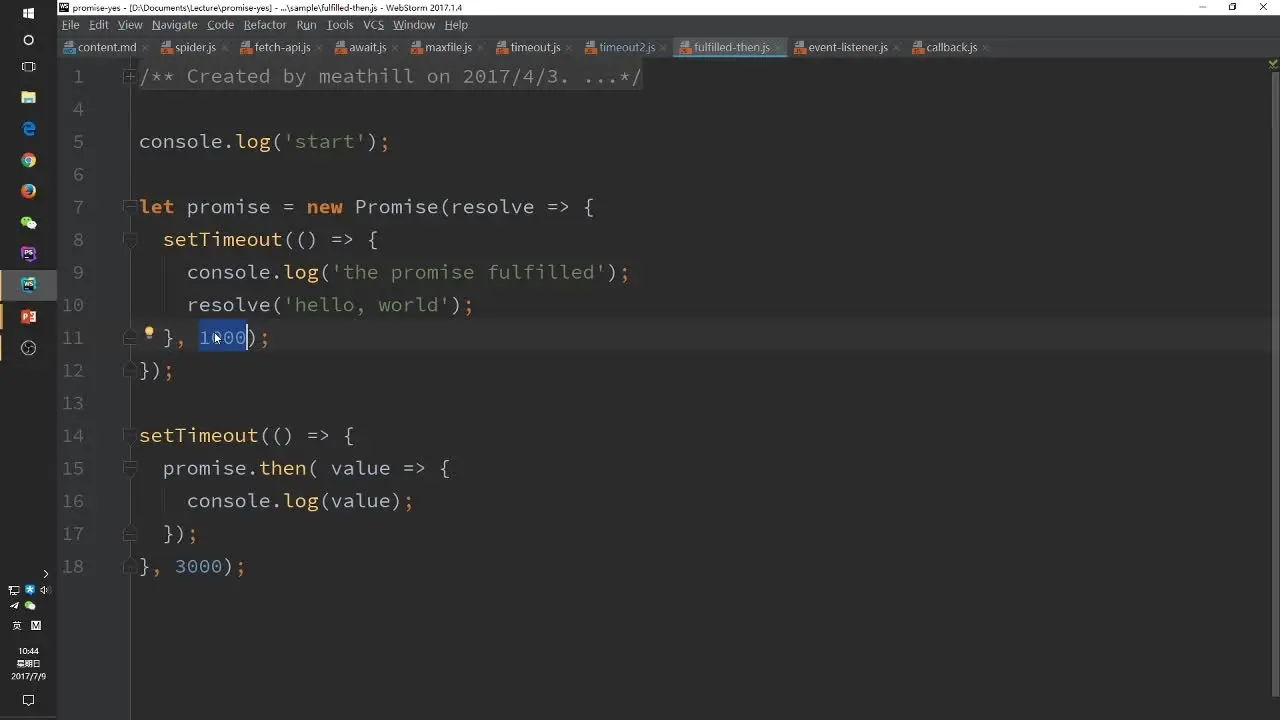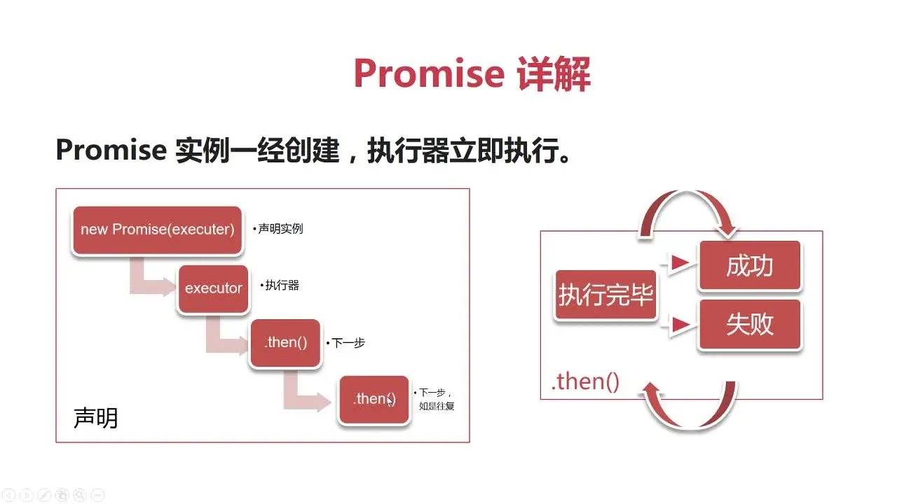 4.Promise状态发生改变就会触发.then( )里的响应函数的后续步骤,Promise状态已经改变,就不会再变化了