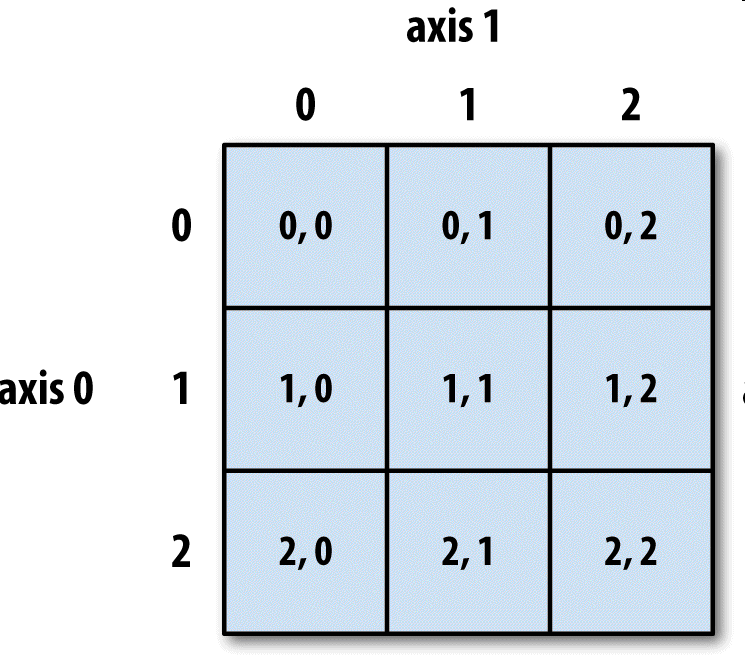 - ndarray,一个具有矢量算术运算和复杂广播能力的快速且节省空间的多维数组。