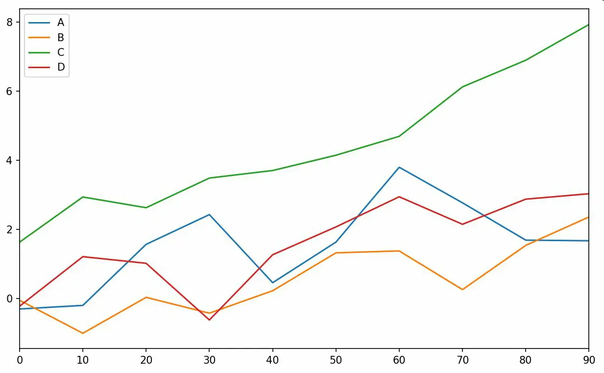 在线型图中,非实际数据点默认是按线性方式插值的。可以通过drawstyle选项修改(见图9-7):