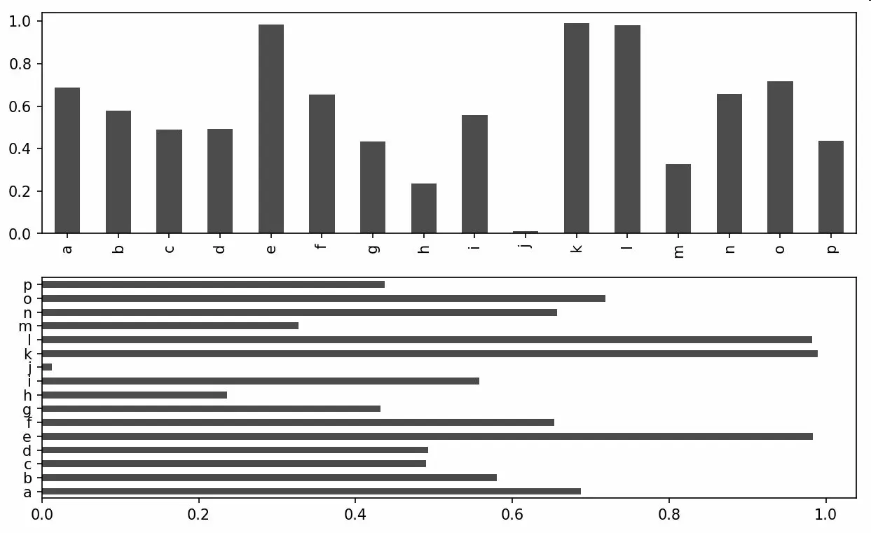 这是非常实用的,因为可以轻松地对axes数组进行索引,就好像是一个二维数组一样,例如axes[0,1]。你还可以通过sharex和sharey指定subplot应该具有相同的X轴或Y轴。在比较相同范围的数据时,这也是非常实用的,否则,matplotlib会自动缩放各图表的界限。有关该方法的更多信息,请参见表9-1。