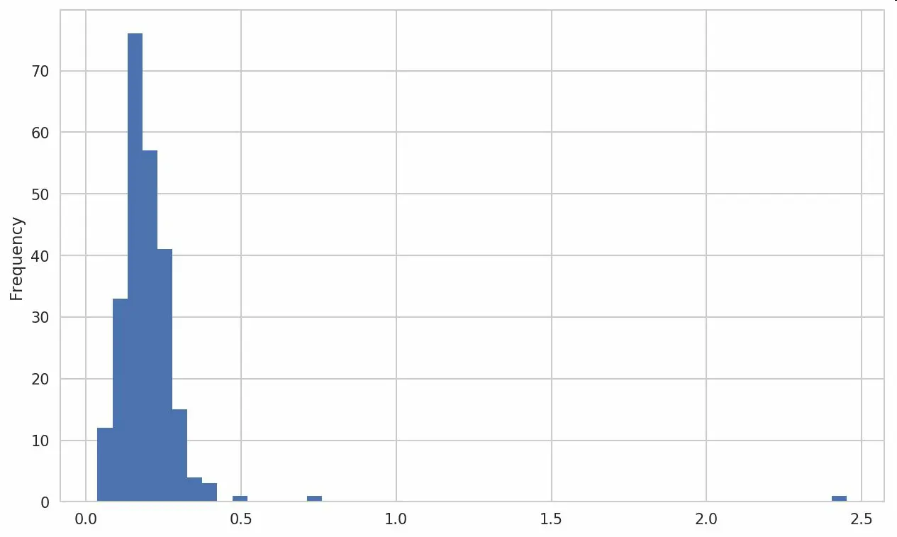 In [92]: tips['tip_pct'].plot.hist(bins=50)