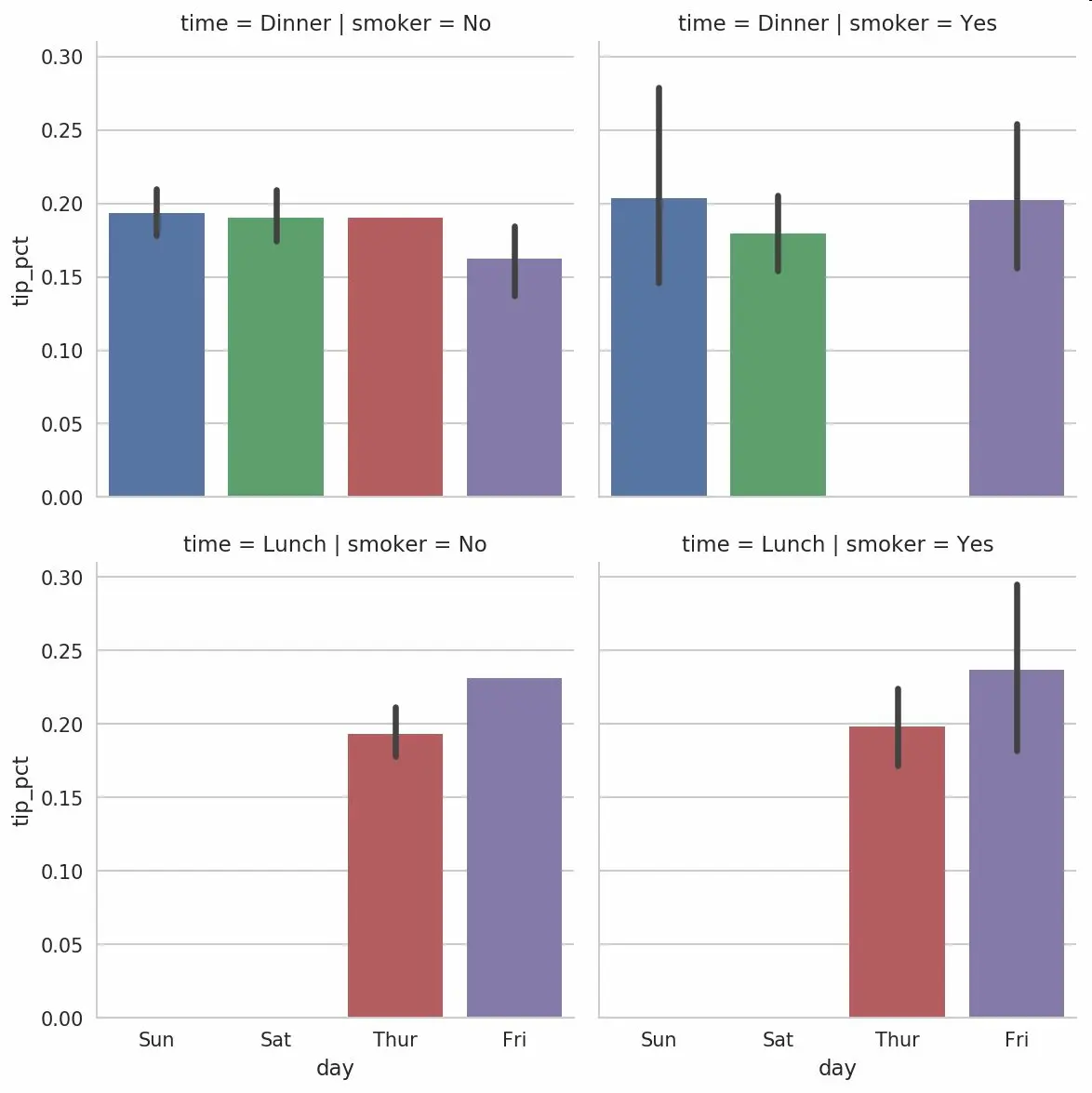 图9-27 按天的tip_pct,通过time/smoker分面
