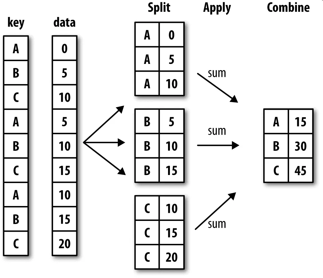 掌握pandas数据分组工具既有助于数据清理,也有助于建模或统计分析工作。在第14章,我们会看几个例子,对真实数据使用groupby。