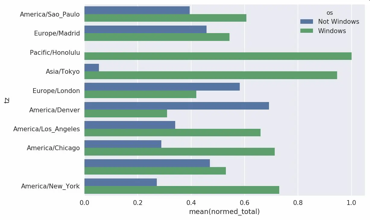 如果想要得到前10位的时区及其计数值,我们需要用到一些有关字典的处理技巧: