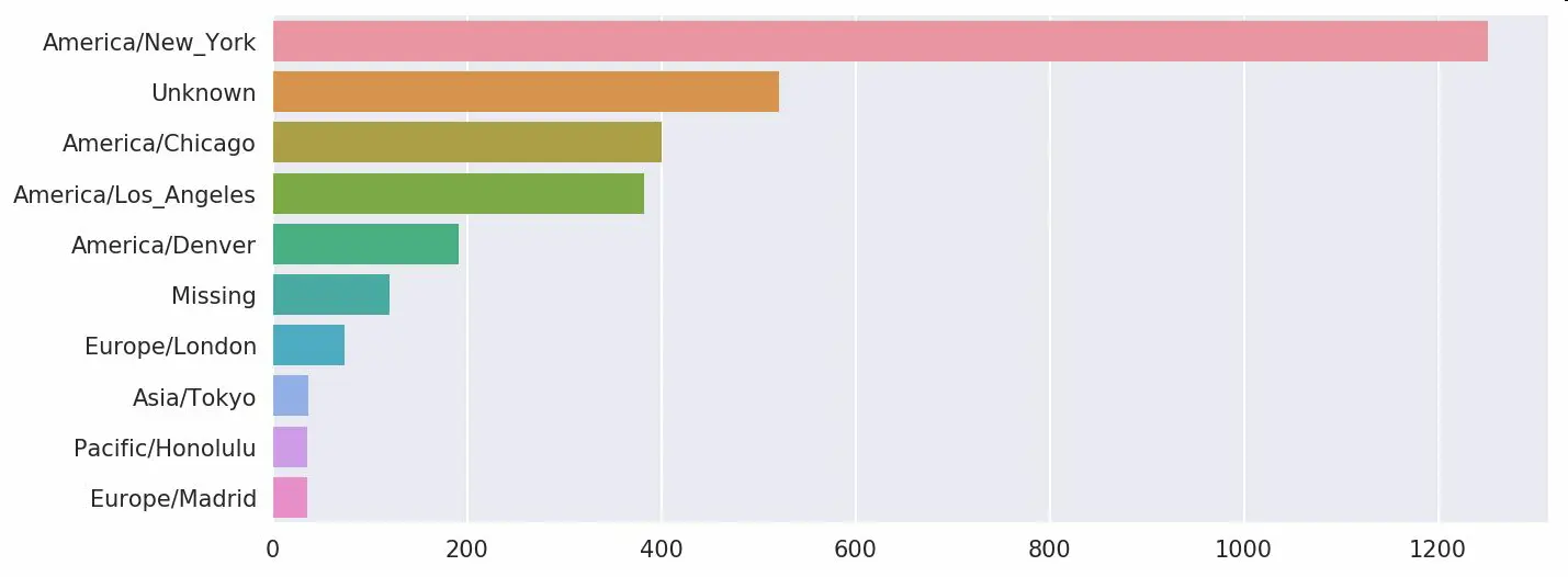 In [13]: time_zones = [rec['tz'] for rec in records if 'tz' in rec]