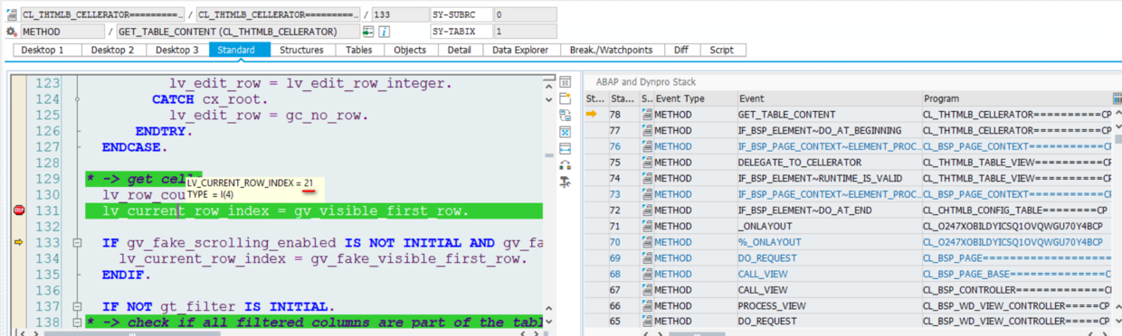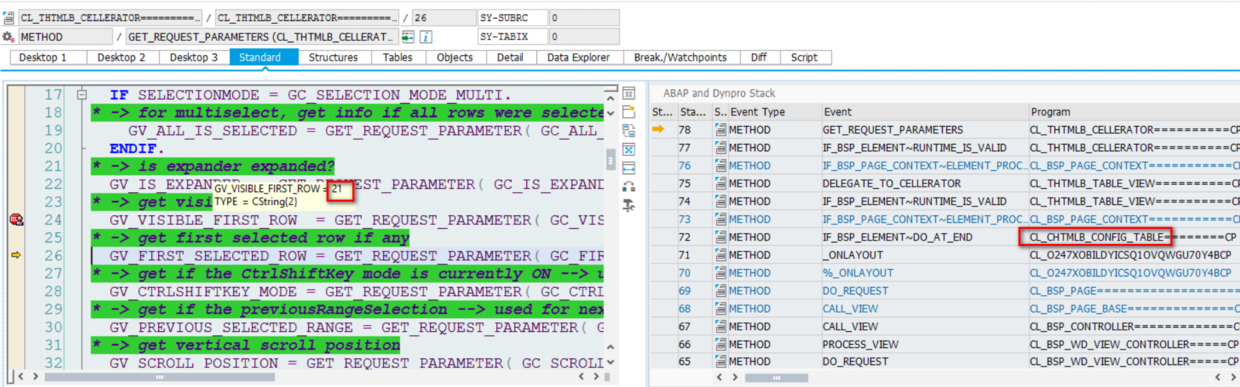 在方法CL_THTMLB_CELLERATOR~GET_REQUEST_PARAMETERS设置断点,找到后台是在何处解析该前台请求传入的visibleFirstRow: