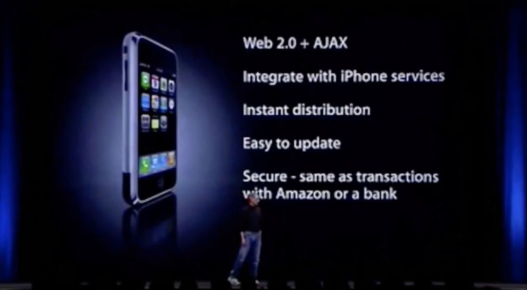 史蒂夫乔布斯正在 WWDC 2007 年的第一款 iPhone 上演示 PWA(那个时候还不叫 PWA)