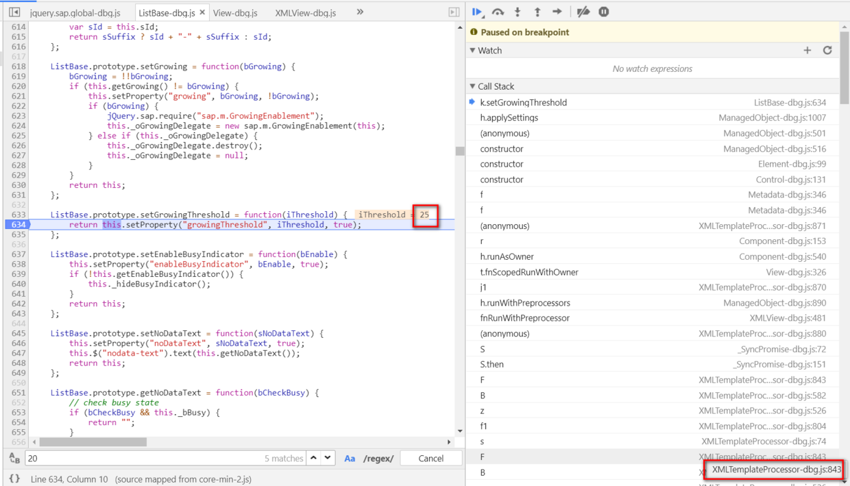 我同事的问题:growingThreshold在文件sap.m.ListBase.js里被硬编码成20, 但是运行时在何处被改写成了25?