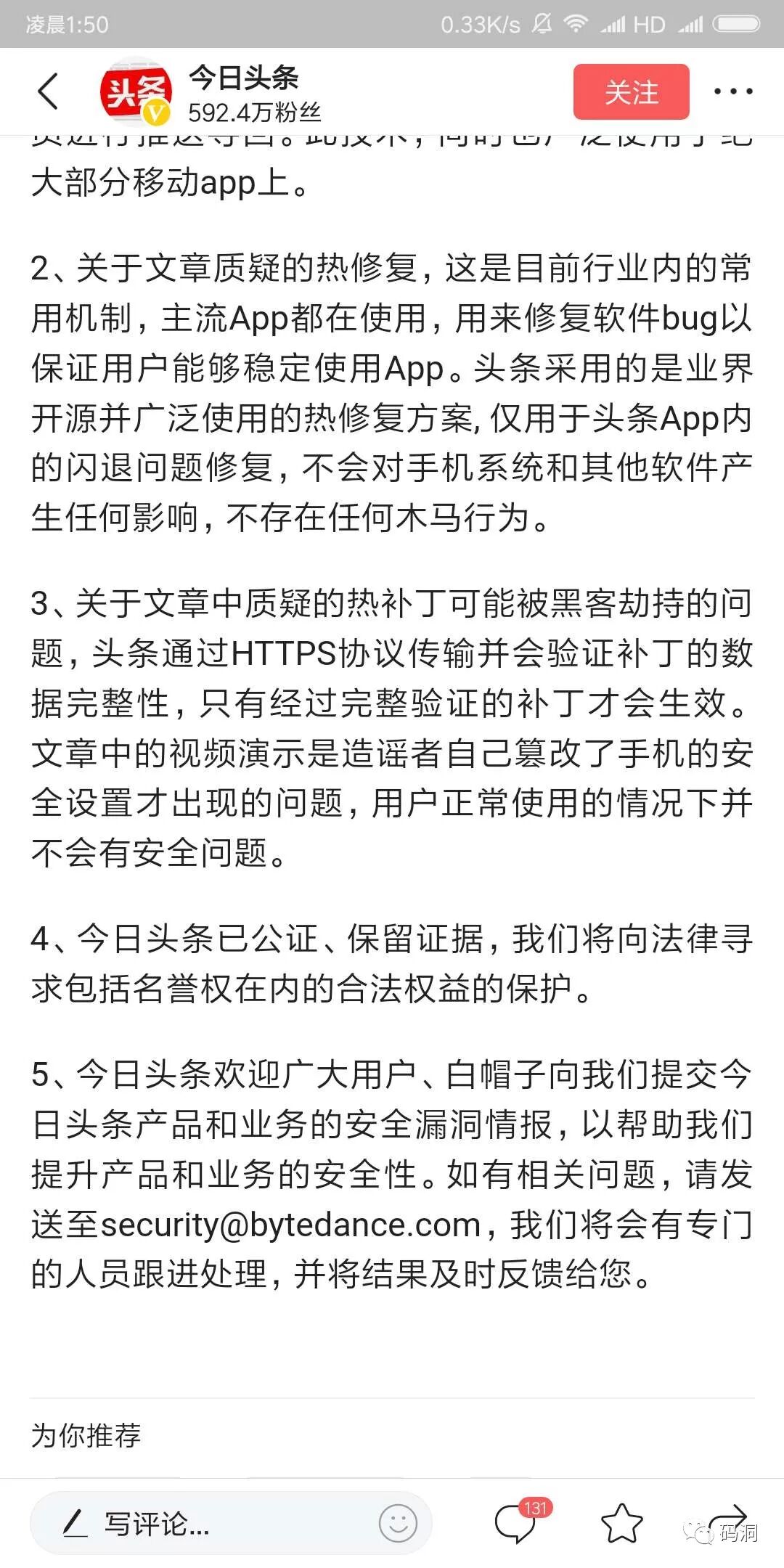 欲知后续事态进展,关注公众号【码洞】,小编为您持续报道。