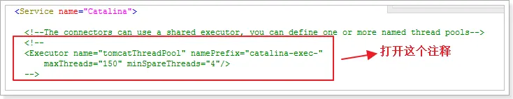 在tomcat中每一个用户请求都是一个线程,所以可以使用线程池提高性能。 开启并且使用 配置: