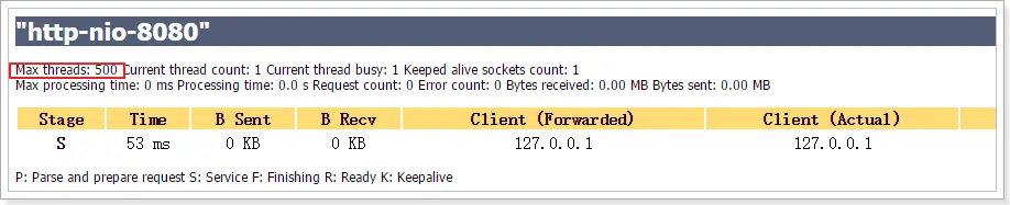minSpareThreads: Tomcat初始化时创建的线程数。默认值25。