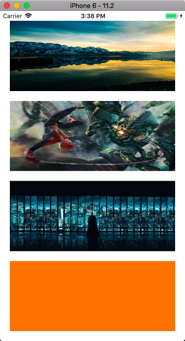 我设置了四个UIImageView并在网上找了体积较大的四张图片来显示。 我将这四个UIImageView的背景色设置为[UIColor orangeColor]。