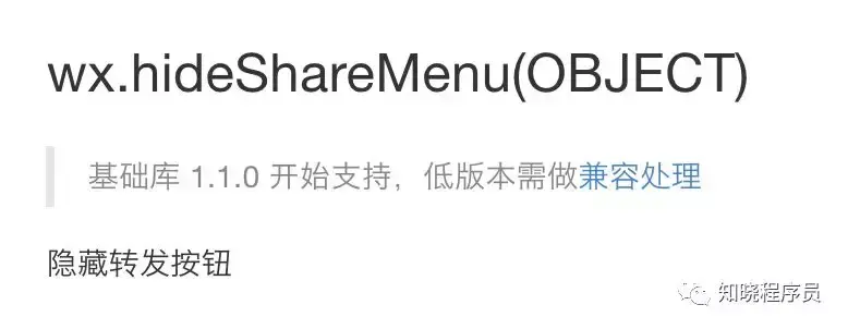 小程序中有个API,wx.hideShareMenu,如下: