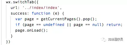switchTab成功跳转后调用success,此时可以拿到跳转后页面的page对象,从而调用页面onLoad方法重载页面;