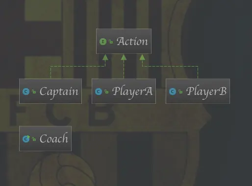这里我们定义了两个访问对象,球员A和球员B,他们都实现了Action接口,并对接口方法做了重写。