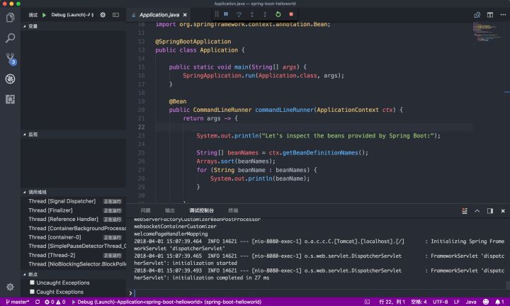 主要看 mainClass,只有第一次生成这个文件,确认后点击 调试 即可看到控制台日志