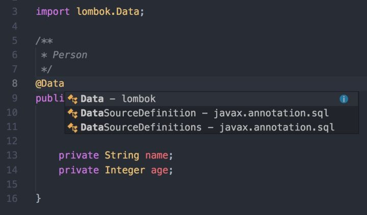这个家伙你用不用都无妨,反正我是挺喜欢的。这里就不啰嗦到底干嘛的,简单来说就是我可以用一个 @Data 注解帮我自动生成(编译后生成)getter、setter、toString、equals、hashCode 这些方法,反正多花时间写这些代码也不会提高你的能力,修改的时候还要多花时间,完全没!必!要!好吗?