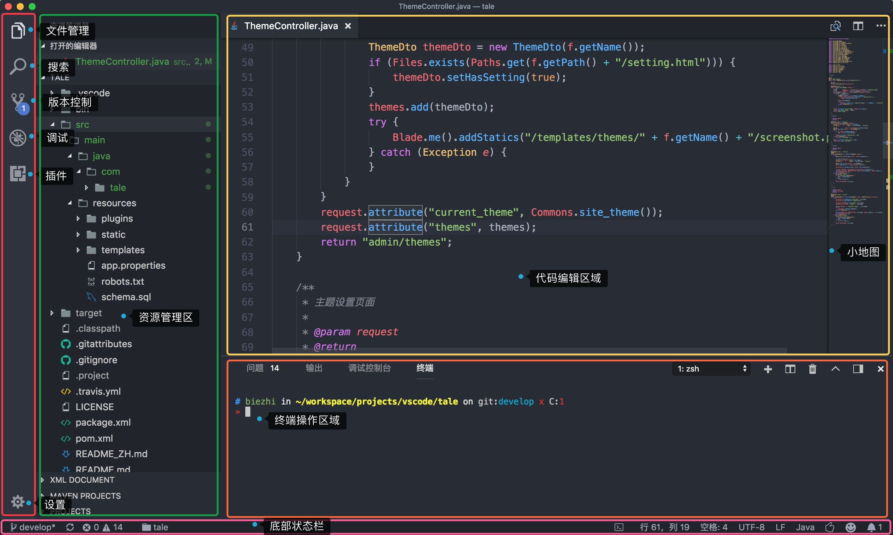 上面是 vscode 的布局,和大多数编辑器一样,分为