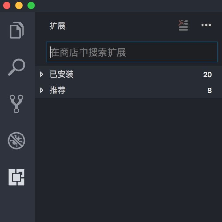 - View Bar 在最左手边,帮助切换视图以及提供额外的上下文相关的提示,比如激活了Git的情况下,需要提交的变化的数目。