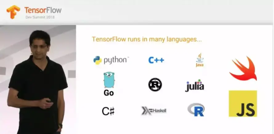 其中讨论最多的话题,还是TensorFlow这个平台对更多编程语言的支持。主要是JavaScript和Swift。