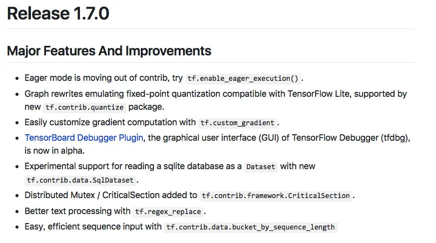 更多关于TensorFlow 1.7.0版本的情况,可以访问GitHub了解。地址:github.com/tensorflow/…