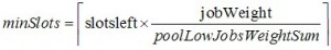 minSlots:作业在相应的pool中的最小slot保证量,实际计算时,map阶段和reduce阶段分开,分别记为:minMaps和minReduces