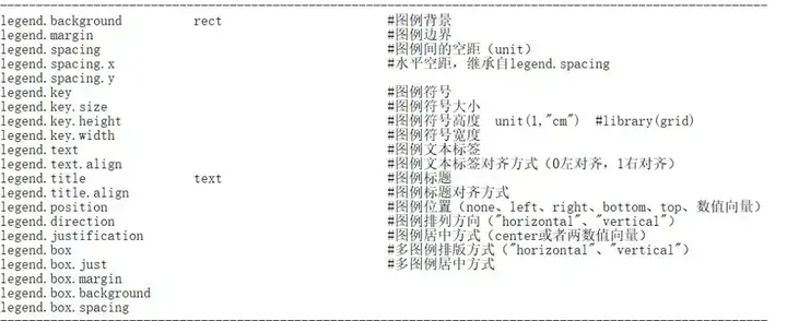 那么除了guides函数之外,还有另外一套图例调整函数分布在theme函数内部(以legend开头的图例系统)。