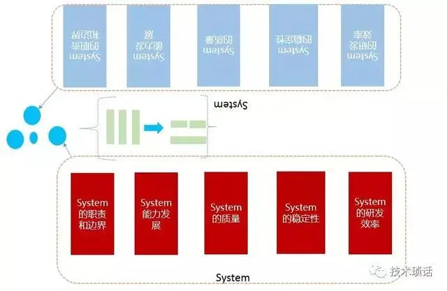 如上图所示,System的 owner,从系统的角度是一个点。但从功能(Func)到System的角度可以是一个面的变化。有平台能力视角、稳定性视角、运维视角。