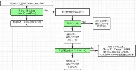 在创建了线程池后,默认情况下,线程池中并没有任何线程,而是等待有任务到来才创建线程去执行任务,除非调用了 prestartAllCoreThreads() 或者 prestartCoreThread() 方法,从这两个方法的名字就可以看出,是预创建线程的意思,即在没有任务到来之前就创建 corePoolSize 个线程或者一个线程。默认情况下,在创建了线程池后,线程池中的线程数为0,当有任务来之后,就会创建一个线程去执行任务,当线程池中的线程数目达到 corePoolSize 后,就会把到达的任务放到缓存队列当中。