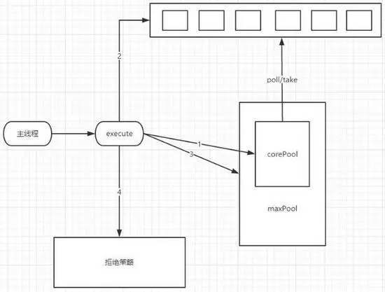在任务队列满了之后 corePool 还没有空闲,那么任务将被提交到 maxPool 中,如果 MaxPool 满了之后执行 task 拒绝策略。