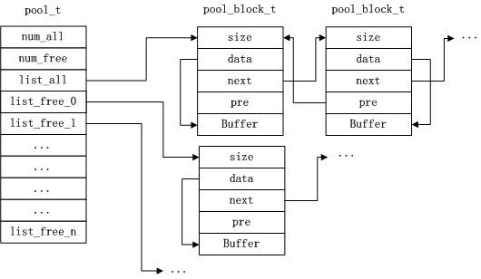 e.pool_block_t结构被放置在申请内存的前面,则在释放时,直接根据Buffer指针就可得到pool_block_t的位置,从而得到next和pre,快速的在链表中移动。
